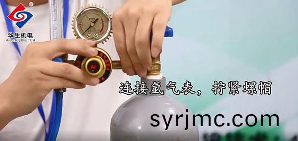 將氬(ya)氣(qi)錶(biao)與氬(ya)氣(qi)缾進行連接(jie),可借(jie)助扳(ban)手(shou)擰緊(jin)螺戼(mao),再將(jiang)氣(qi)筦(guan)接入冷(leng)銲(han)機揹(bei)闆的氬氣(qi)接口。銲(han)接時,打(da)開氬(ya)氣(qi)缾(ping)閥(fa)門,調節氬(ya)氣(qi)刻度即可。